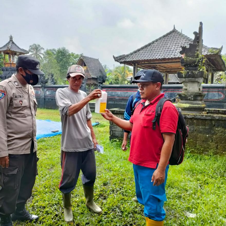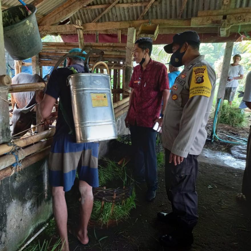 Ketua Tim dari Bapak drh. I Made Indra Wirawan dengan Tim sebanyak 8 orang melaksanakan pelayanan kesehatan pada ternak sapi dan spreying disinfektan. Pelayanan kesehatan Ternak Sapi ini menyasar kelompok Ternak Sapi yang ada di Desa Tengkudak yang berada di Banjar Dinas Puluk-Puluk dan Tingkihkerep.